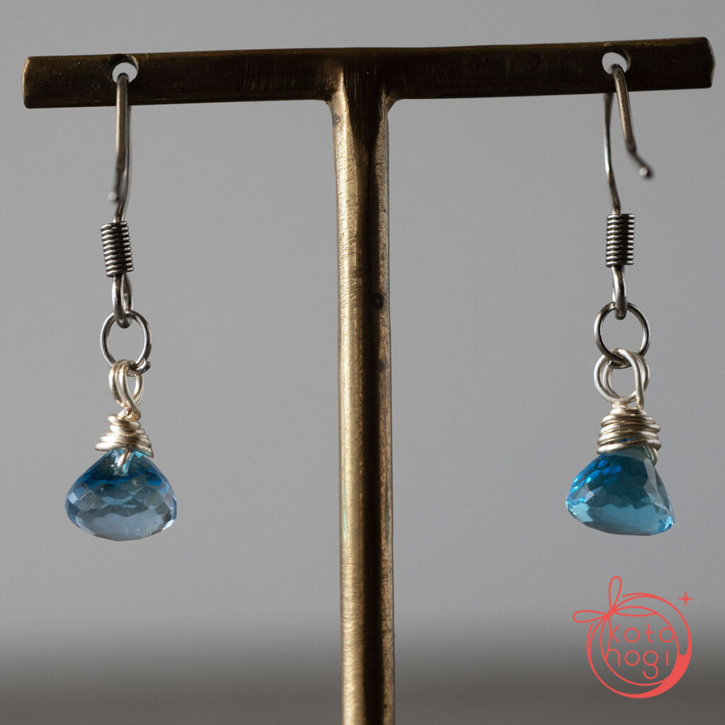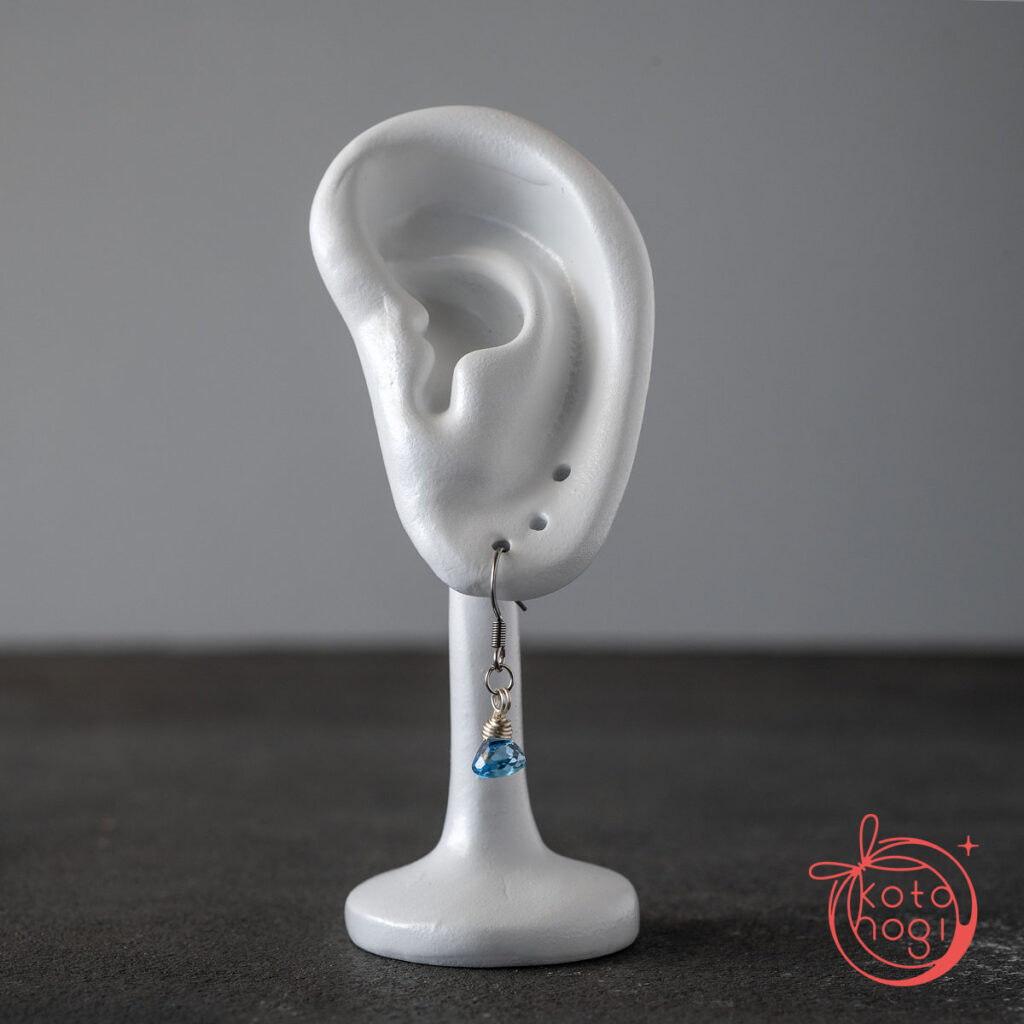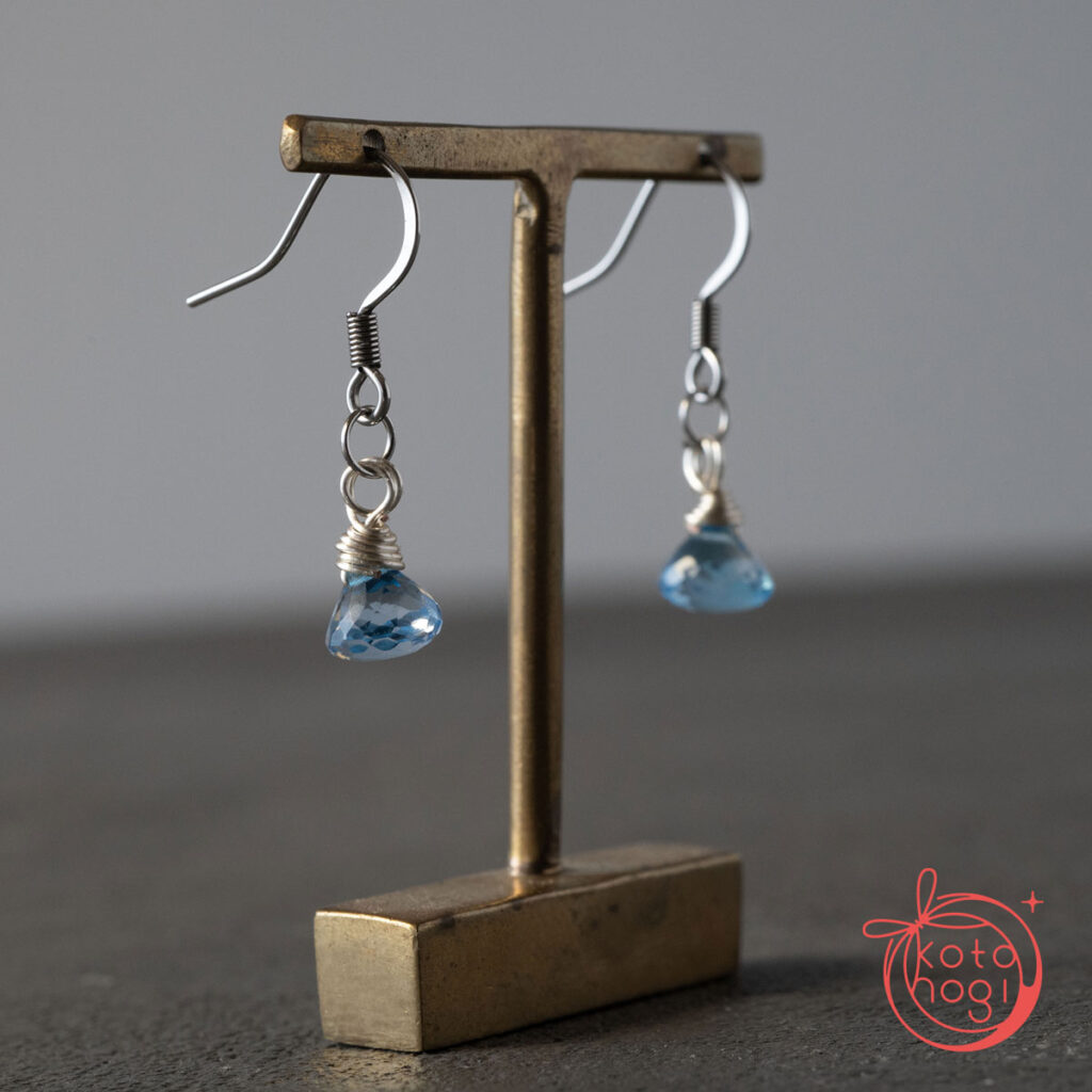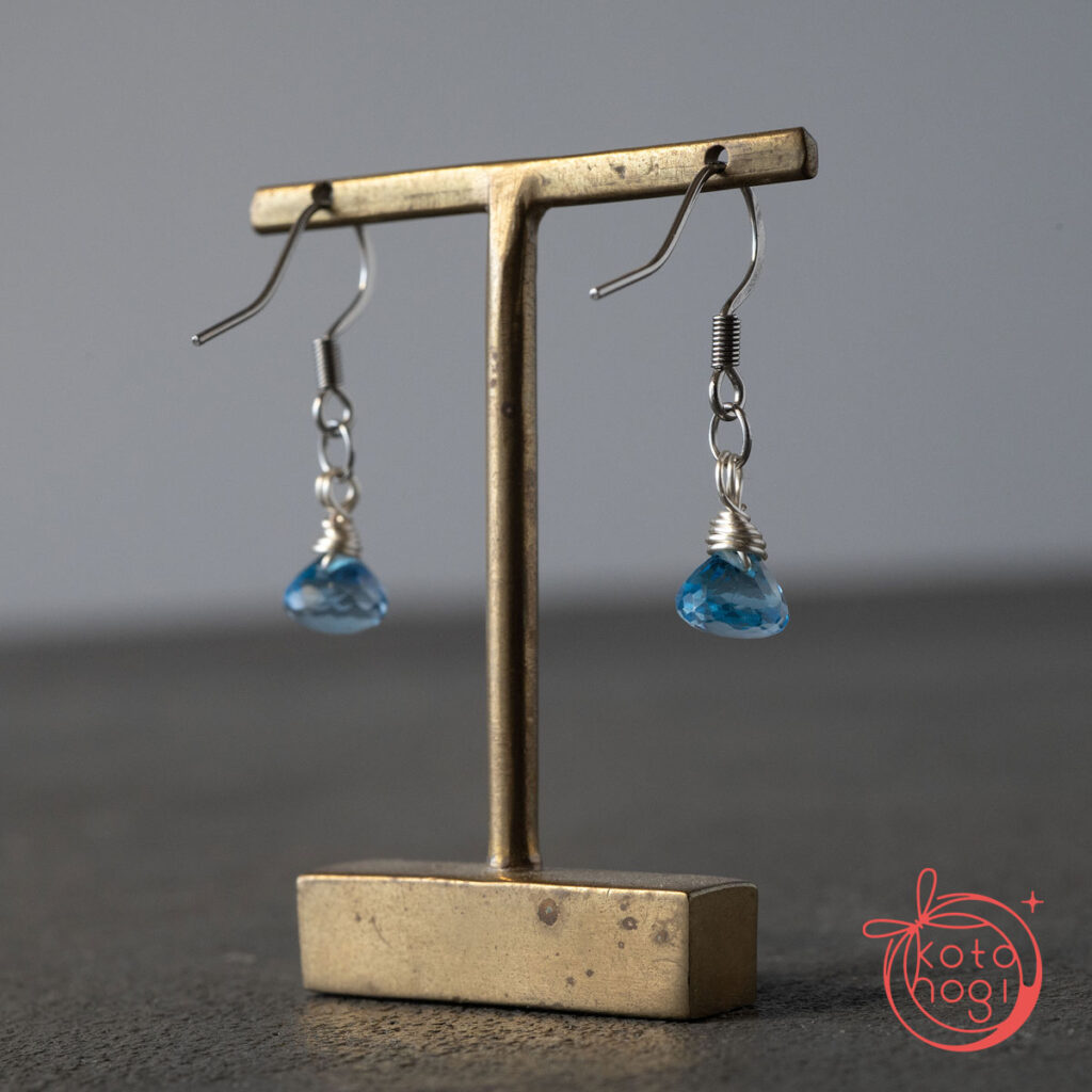 美しいスイスブルートパーズが耳元で優しく揺れるお守りピアスです。