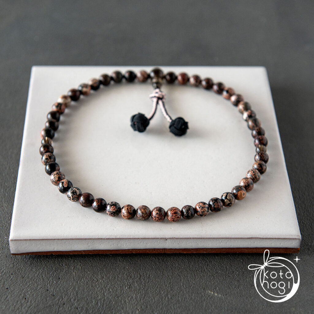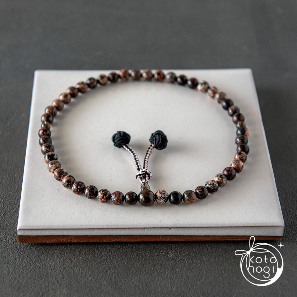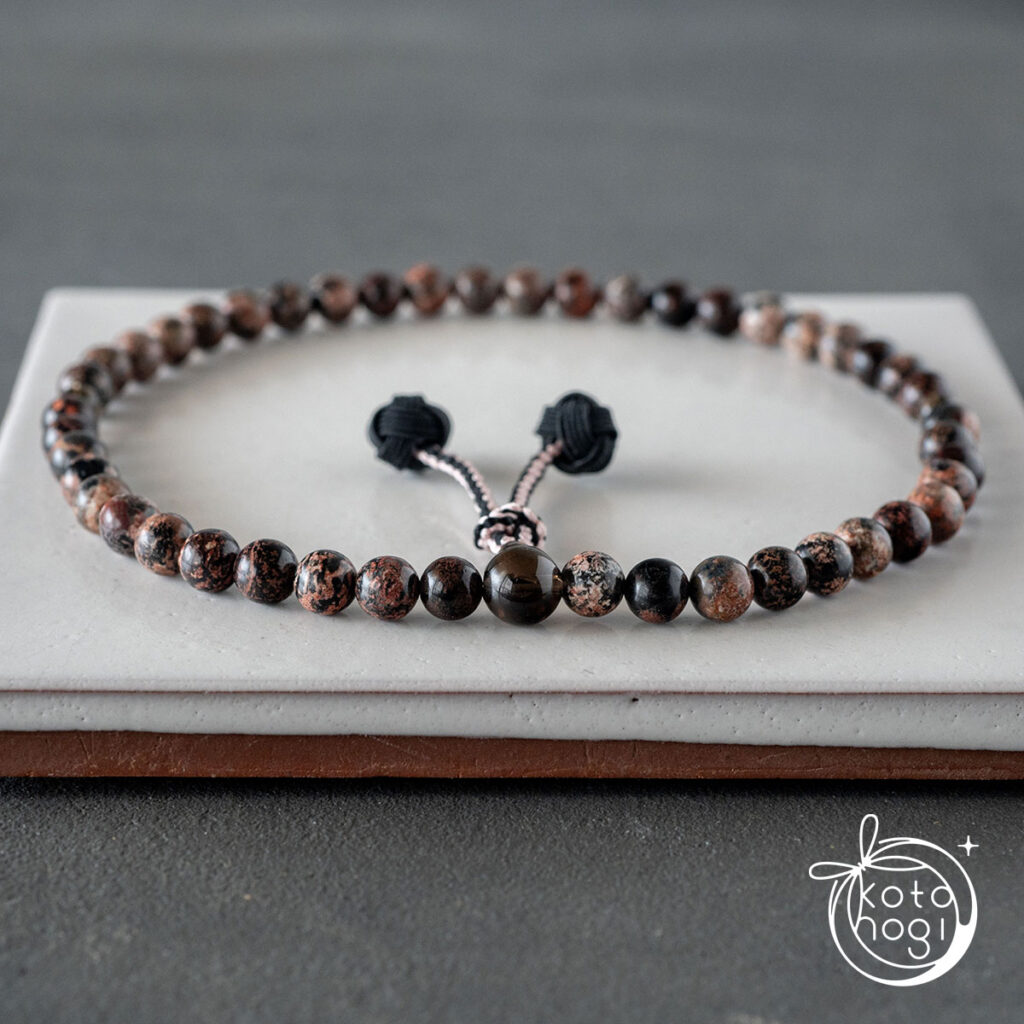 深みのある黒と赤褐色の模様が美しいフラワーオブシディアンをメインに、