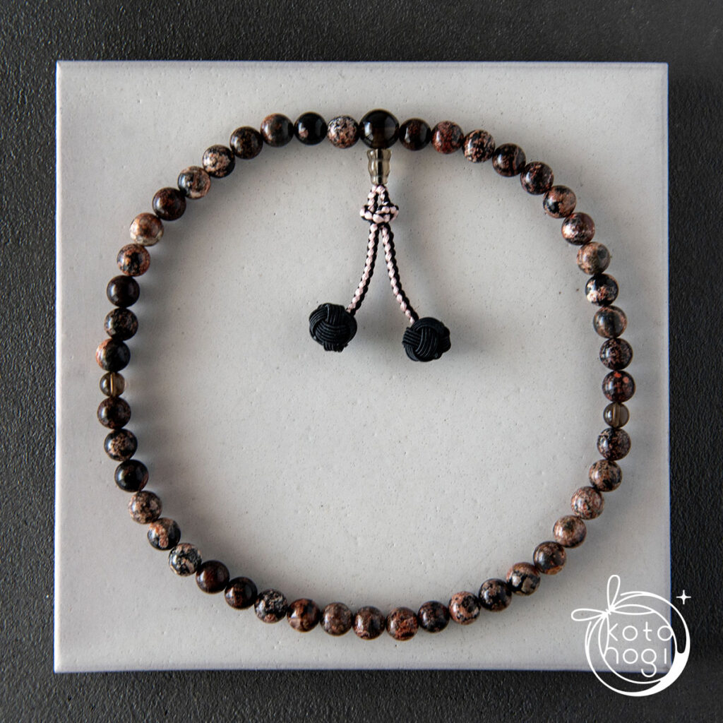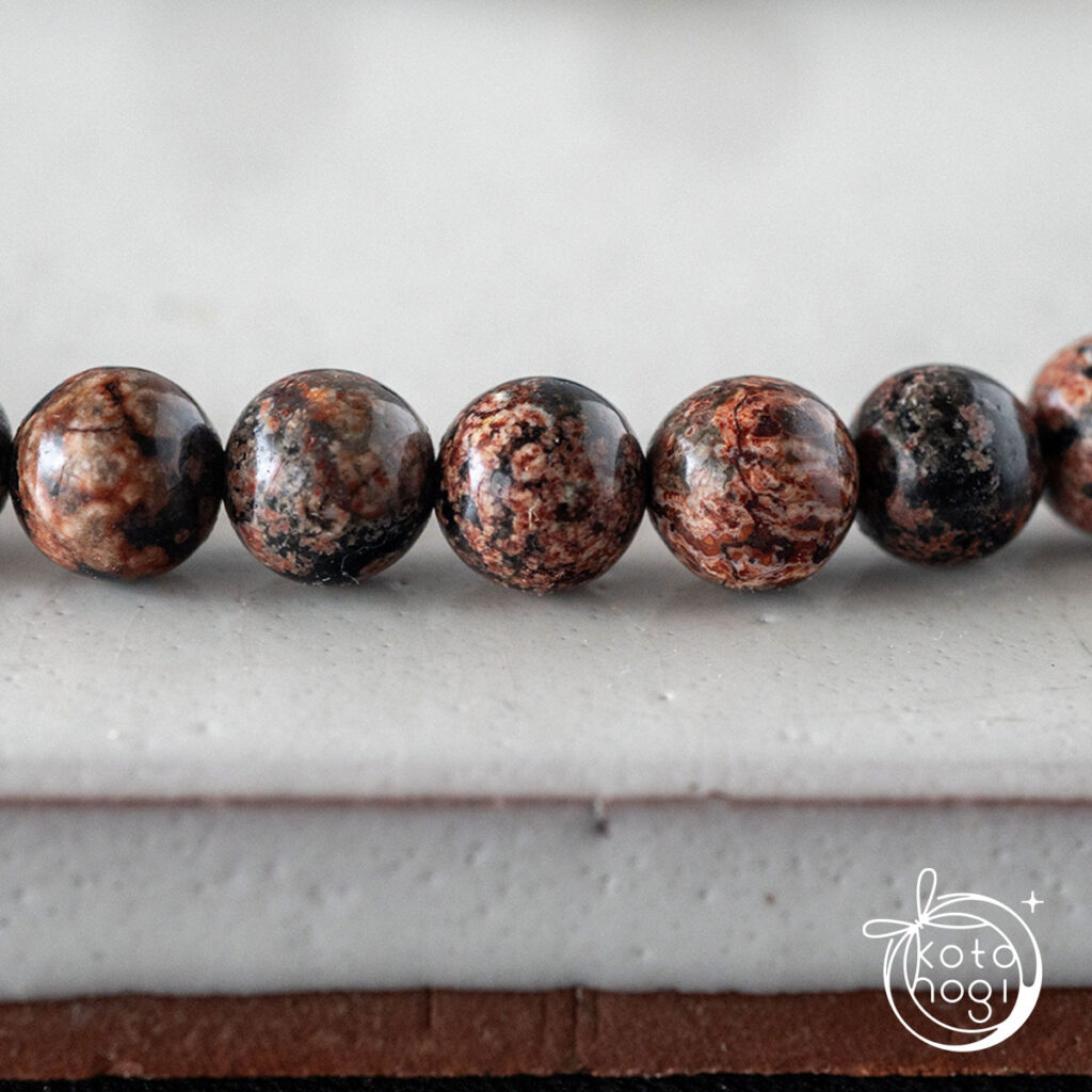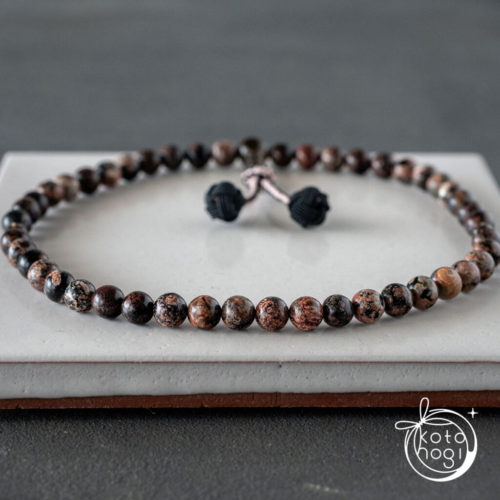 深みのある黒と赤褐色の模様が美しいフラワーオブシディアンをメインに、