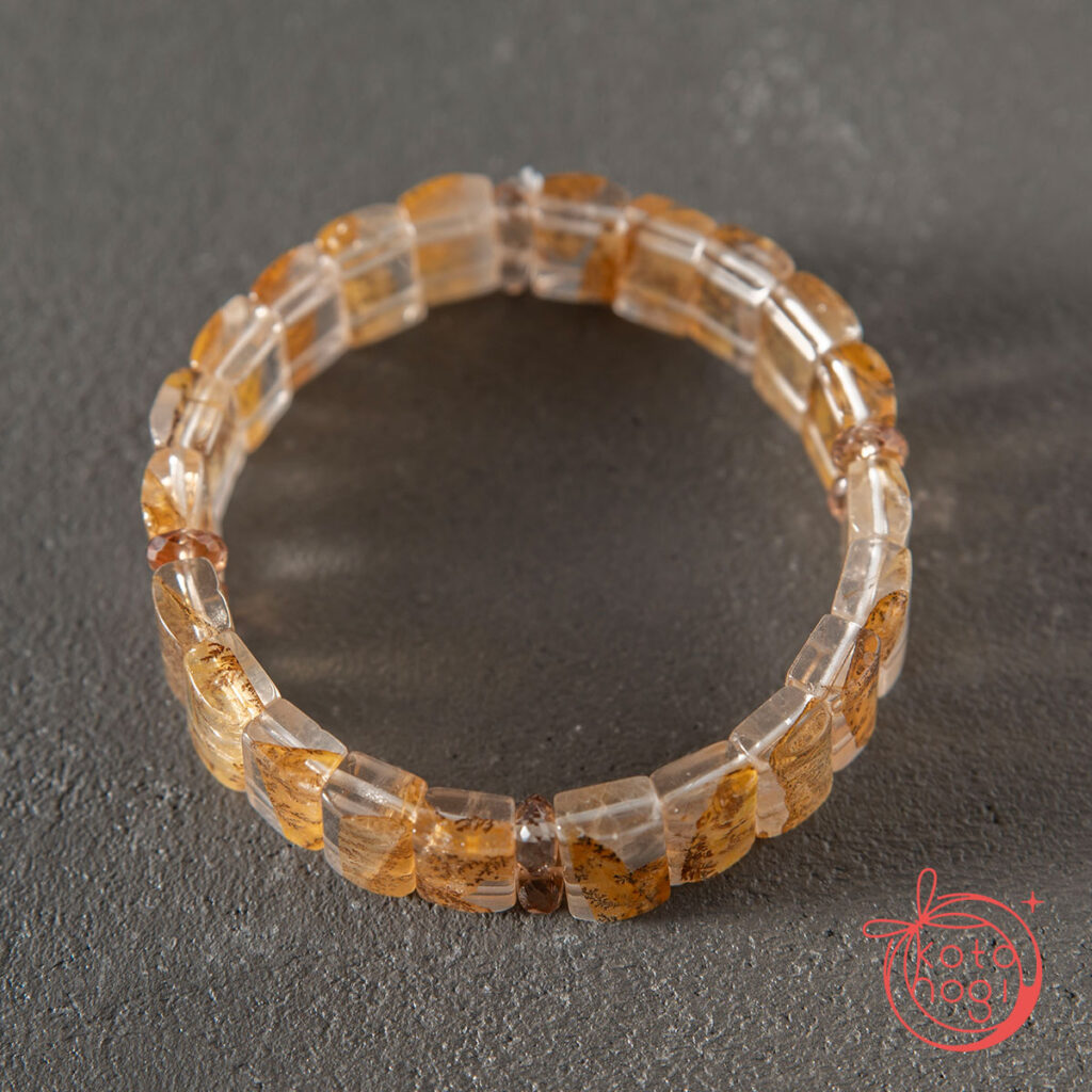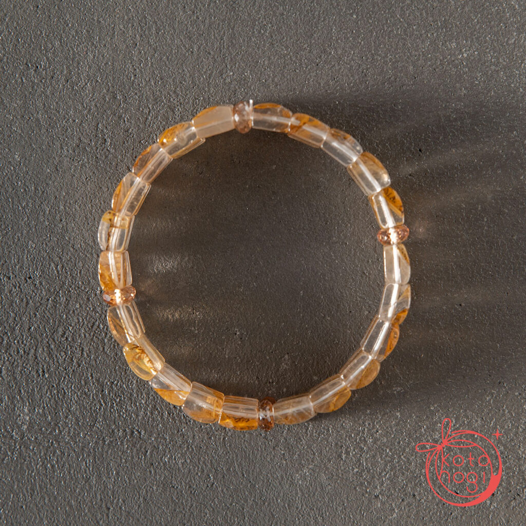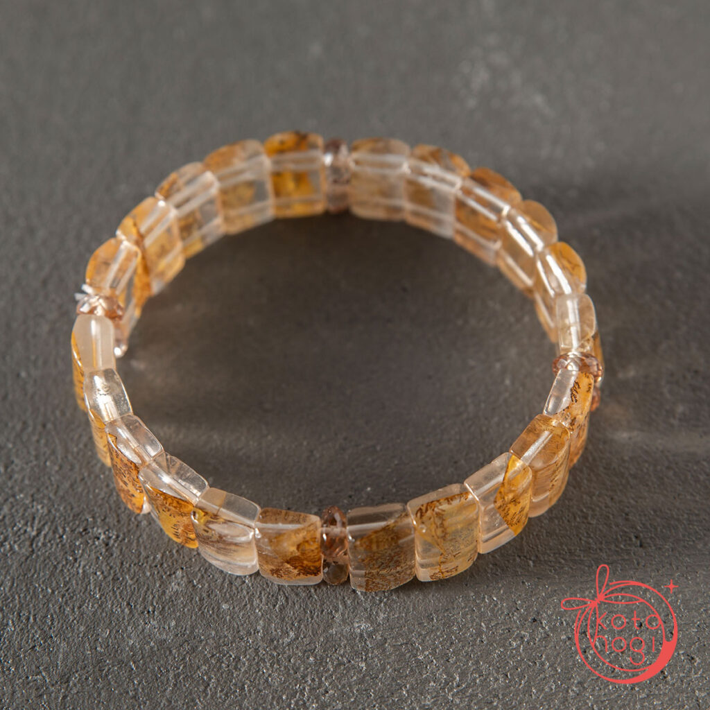 オーダーメイドのご依頼で、心機一転のお供となるブレスレットで、丸玉ではない素材を使用して、とのことでお仕立てしたお守りブレスレットです。