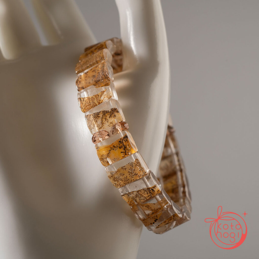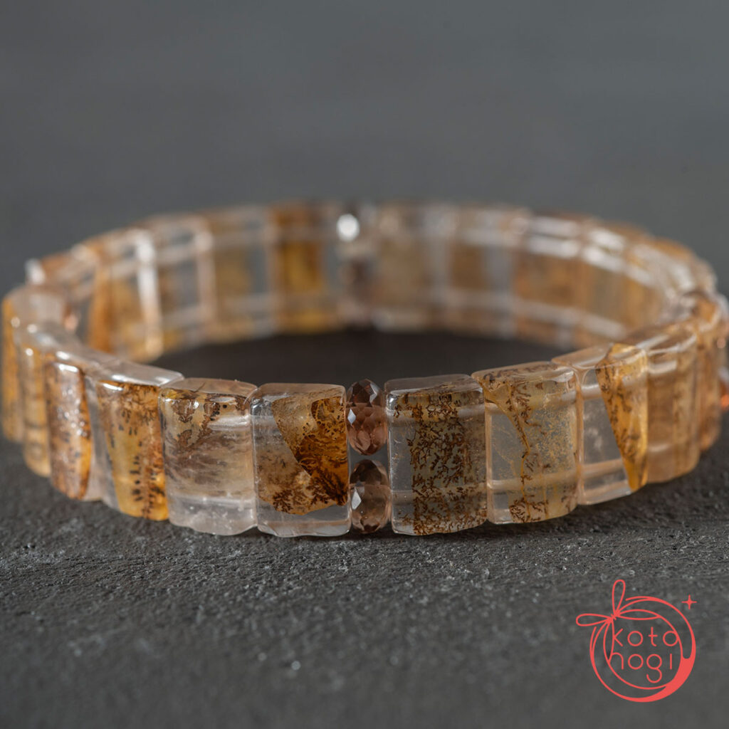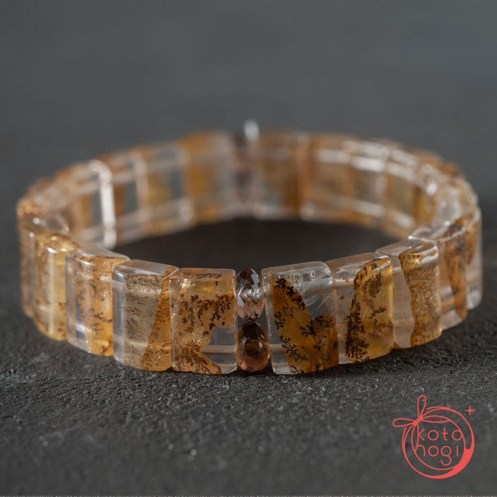 バングル型デンドリティッククォーツと宝石質ブラウントパーズを使用しております。