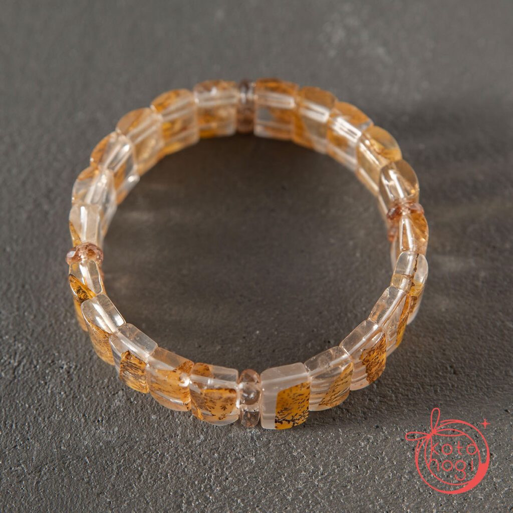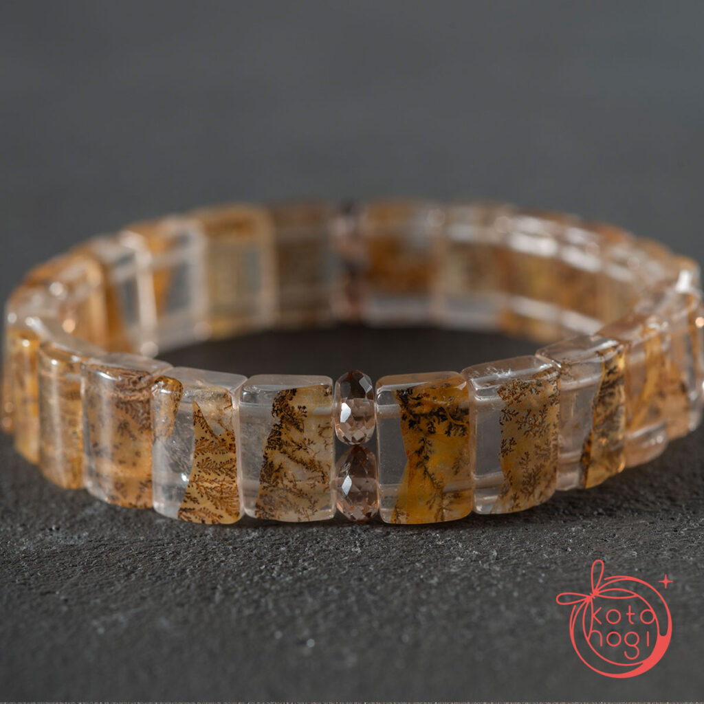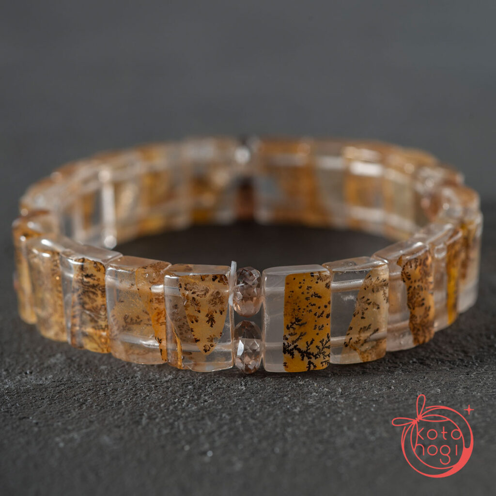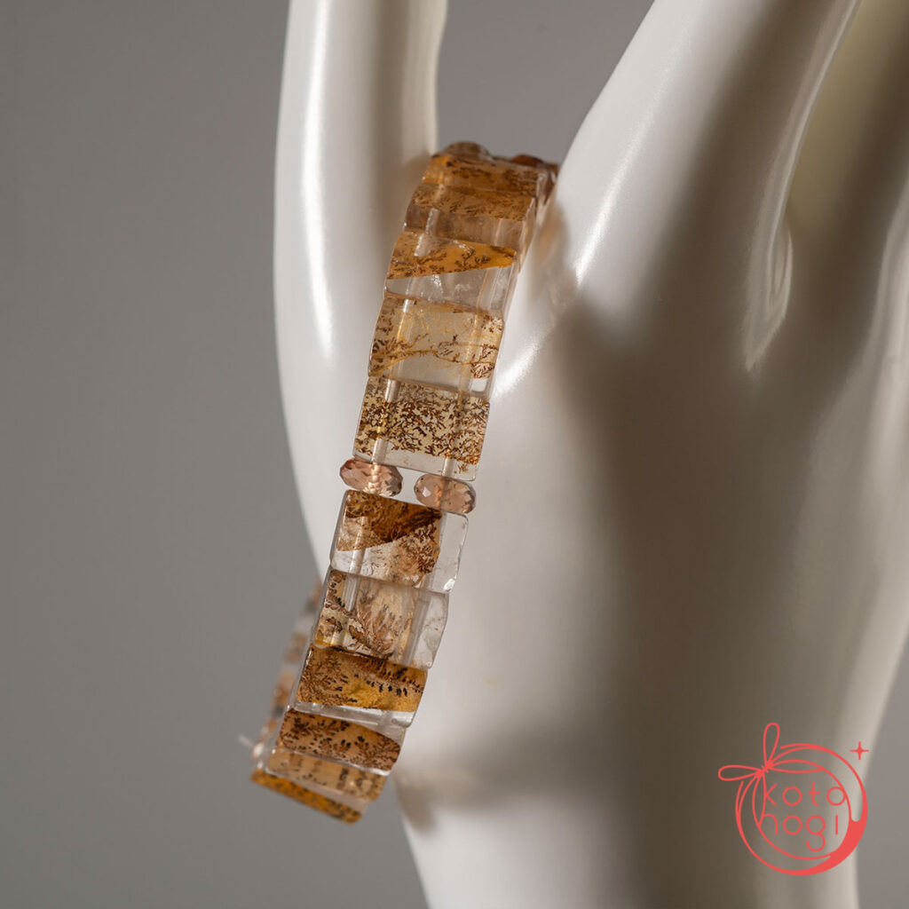 バングル型デンドリティッククォーツと宝石質ブラウントパーズを使用しております。