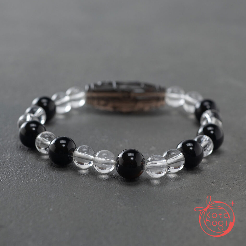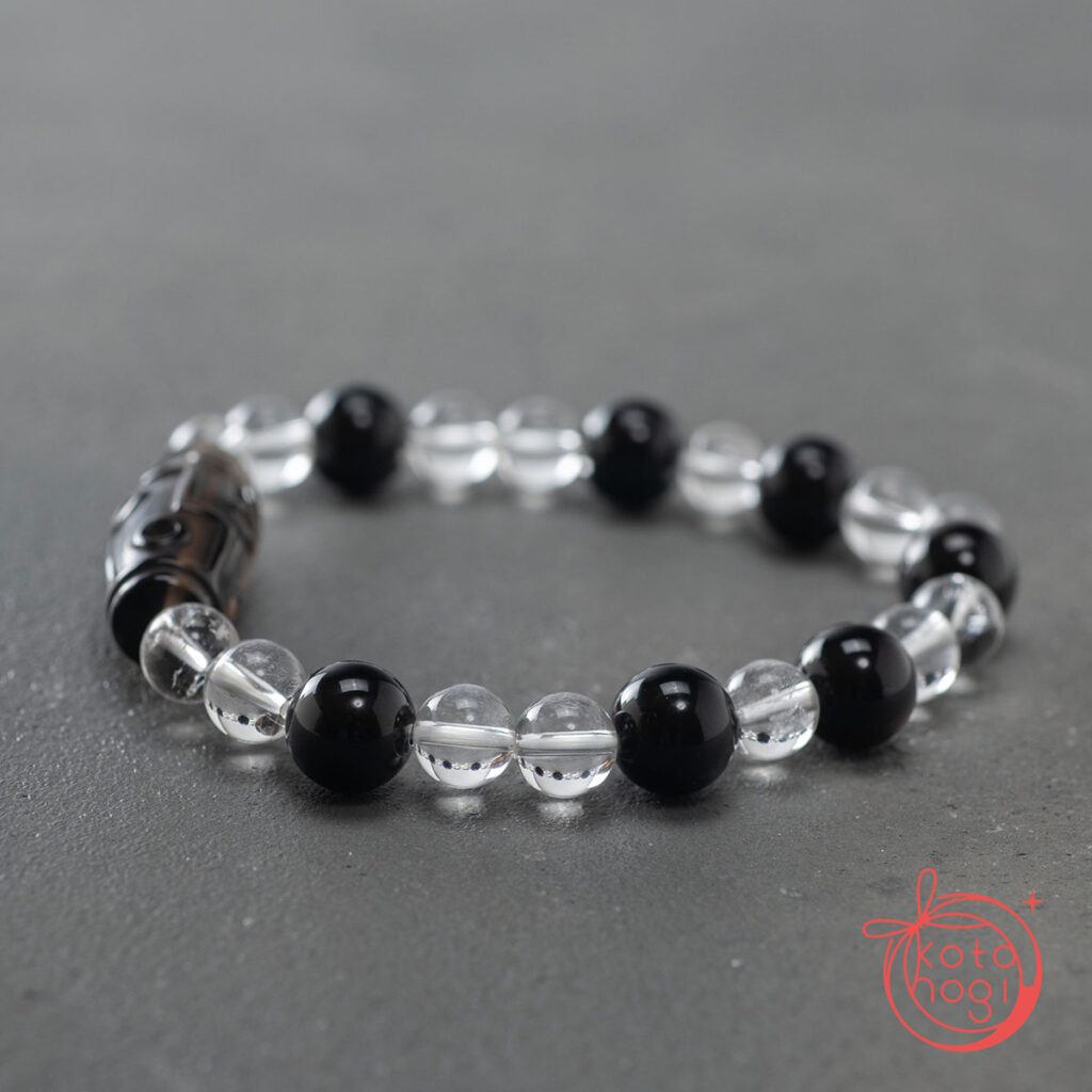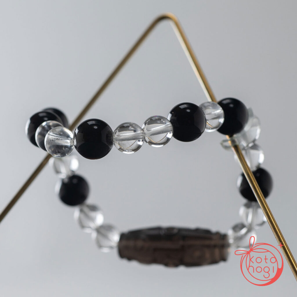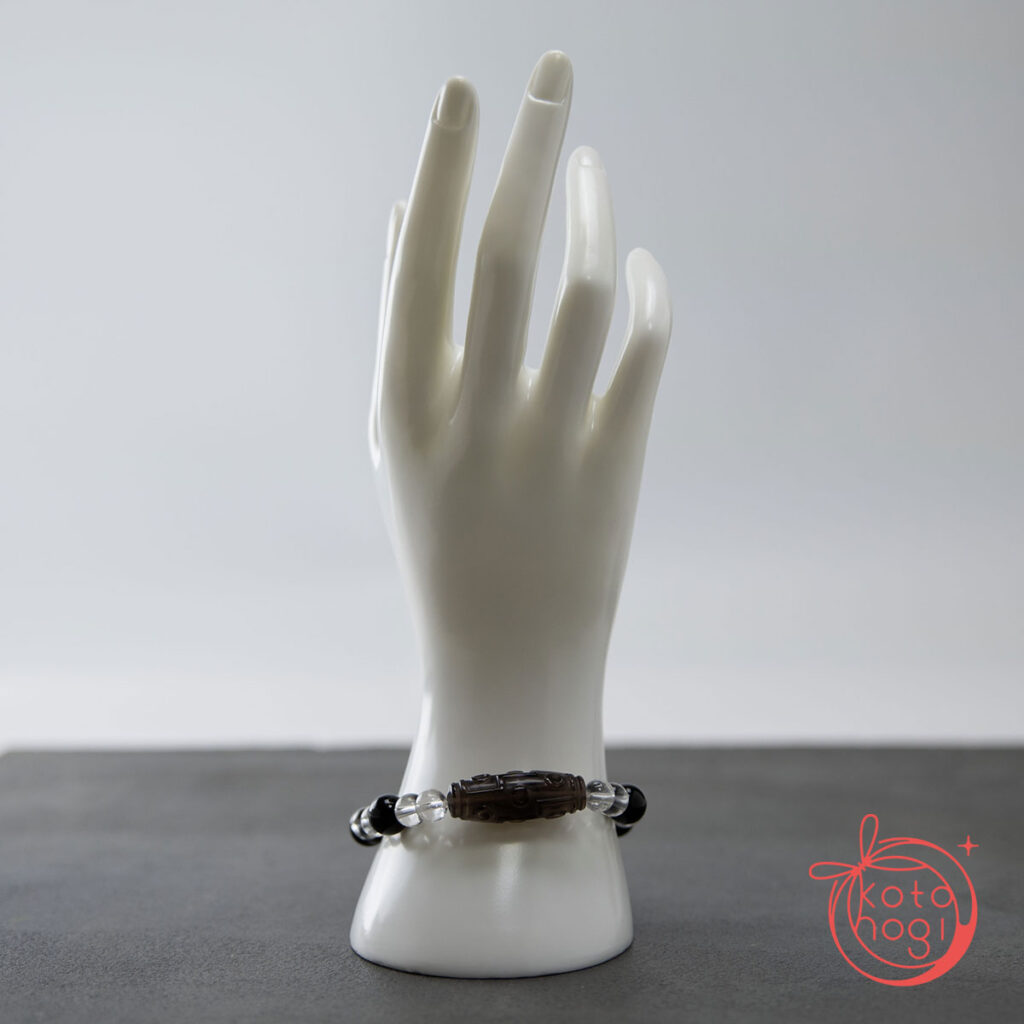 厄を祓い、停滞を抜けて流れを整えるために組み上げた一本。 スモーキークォーツの九眼天珠を中心に、チベット産モリオンとヒマラヤ水晶を合わせました。逆境をしなやかに乗り越え、状況を好転へ導く守りのブレスレットです。