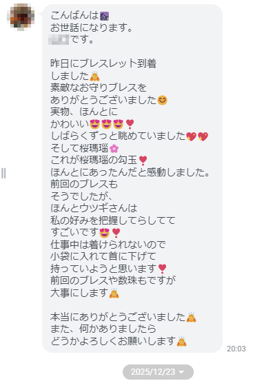 素敵なお守りブレスをありがとうございました【お客様の声】